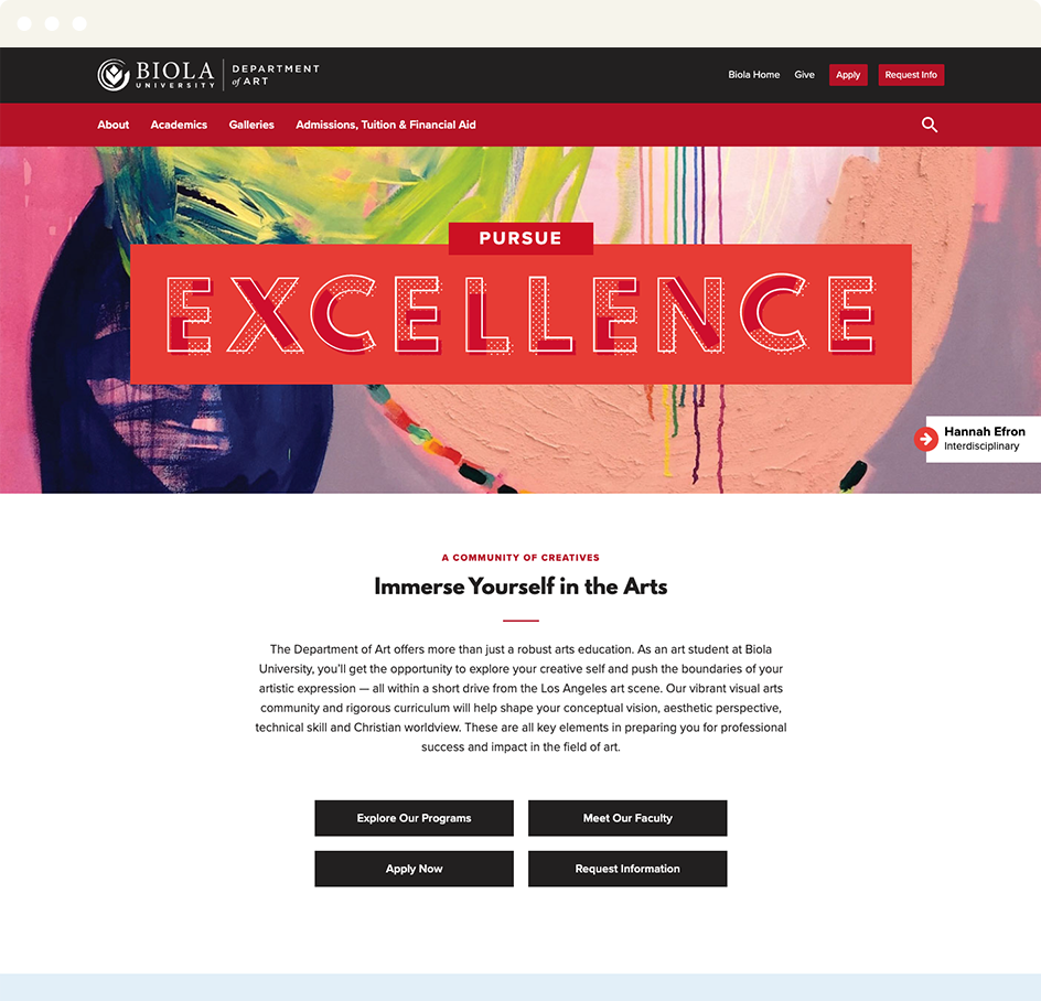 The home page of Biola University’s Department of Art